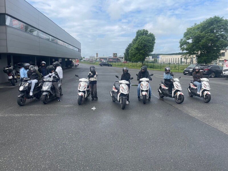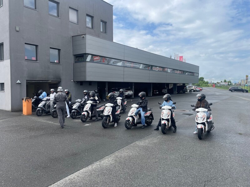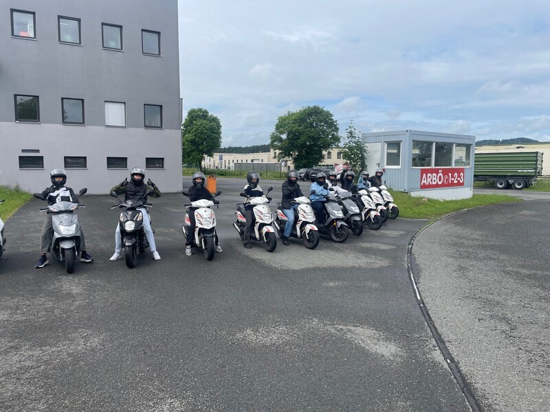 Eine Gruppe fing mit dem theoretischen Teil des Workshops an und die zweite durfte ihr Können gleich auf den Mopeds vorführen. Bei der Theorie ging es u.a. um die richtige Kleidung beim Moped fahren, das Erkennen von Gefahrenstellen und den verantwortungsbewussten Umgang mit dem Fahrzeug.