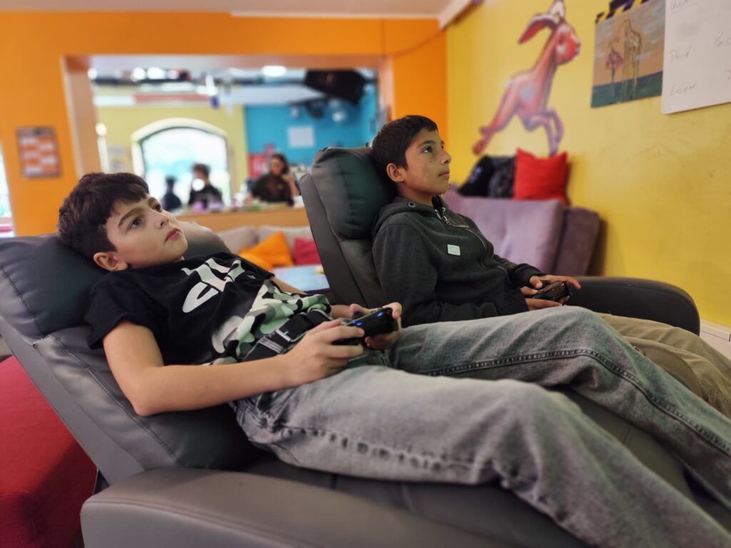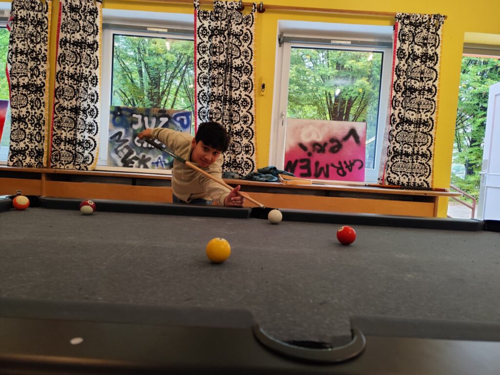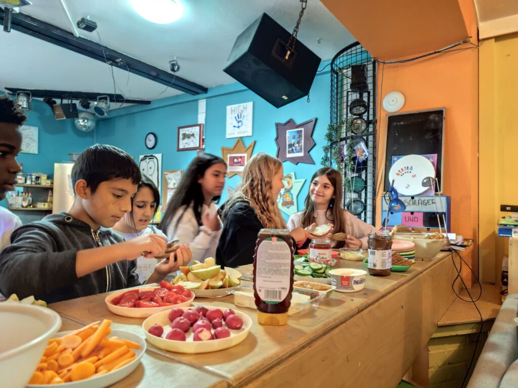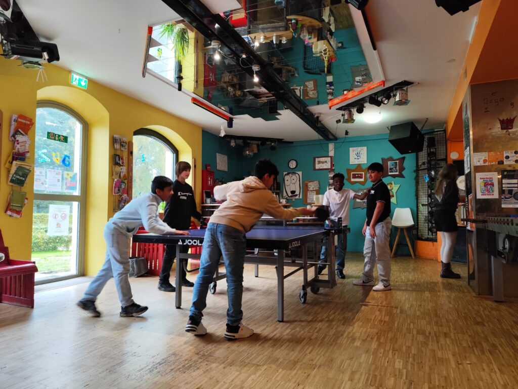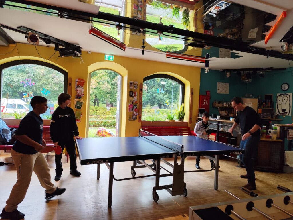 Die Schülerinnen und Schüler konnten sich bei verschiedenen Kennenlernspielen austoben, gemeinsam Musik hören, Tischtennis spielen und bei einem Fifa-Turnier gegeneinander antreten. Gratulation an den Sieger Qusai! Zwischendurch wurde gemeinsam gejausnet – sehr zur Freude aller Beteiligten.